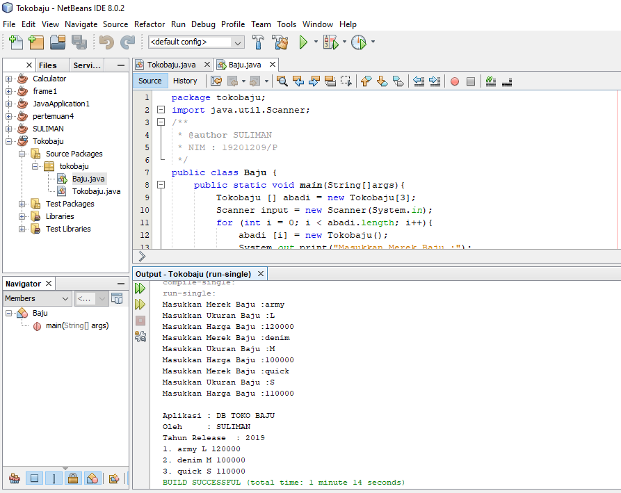 pada gambar tersebut dapat dilihat alur dari aplikasi yang saya buat. di aplikasi ini saya menggunakan dua class dengan bahasa java dan menggunakan text editor neatbens 8.0.2, berikut tampilan class dari aplikasi.